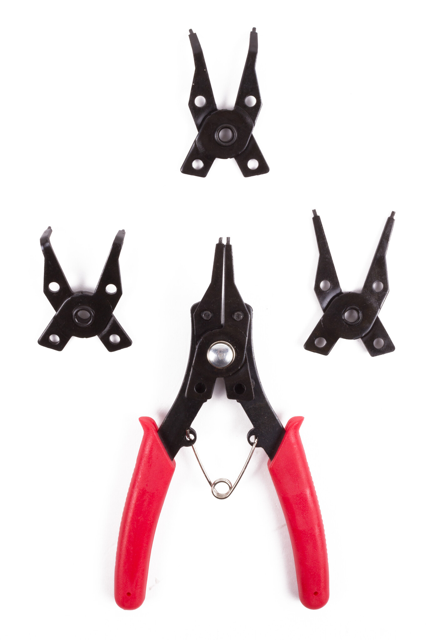 Deze borgveertang is een praktisch hulpmiddel voor iedereen die regelmatig borgveren moet bevestigen of verwijderen, en dankzij de verschillende hoeken en inserts kunt u met gemak in smalle ruimtes werken en moeilijke hoeken bereiken.