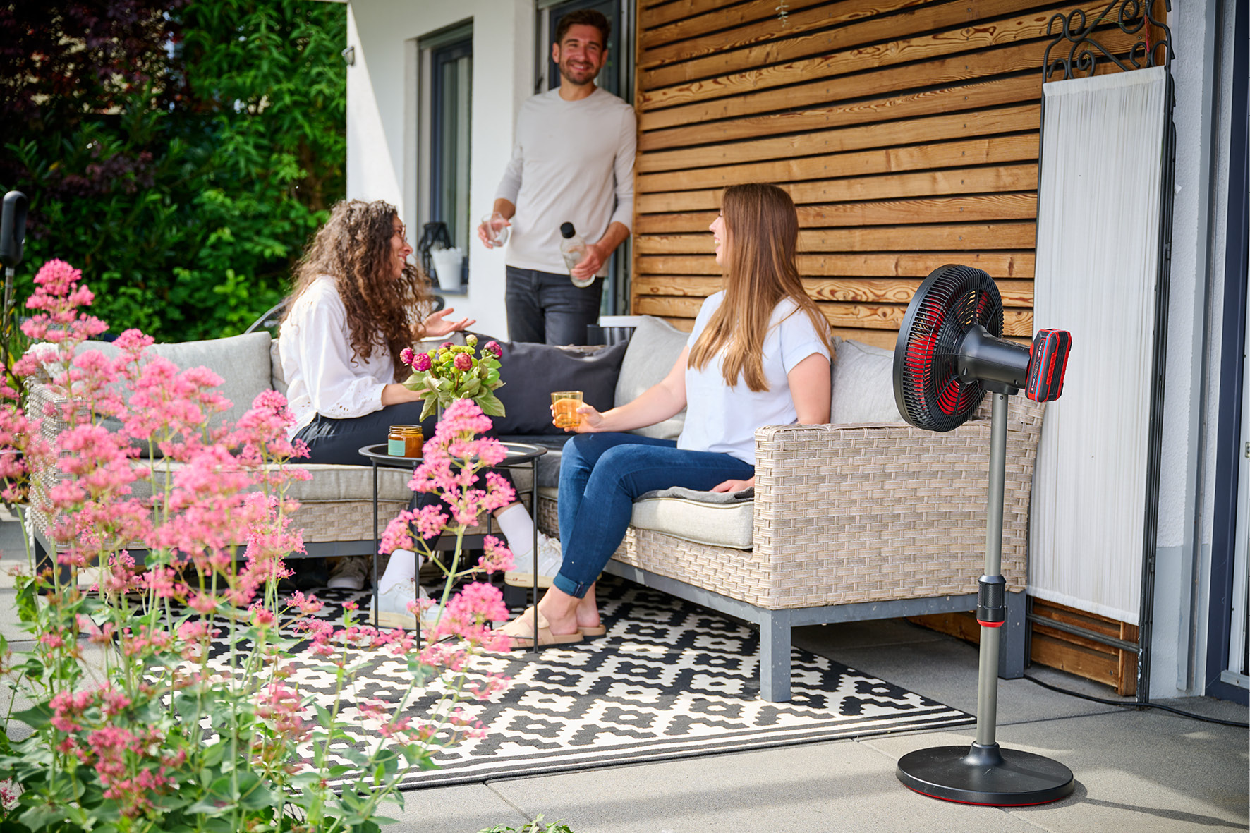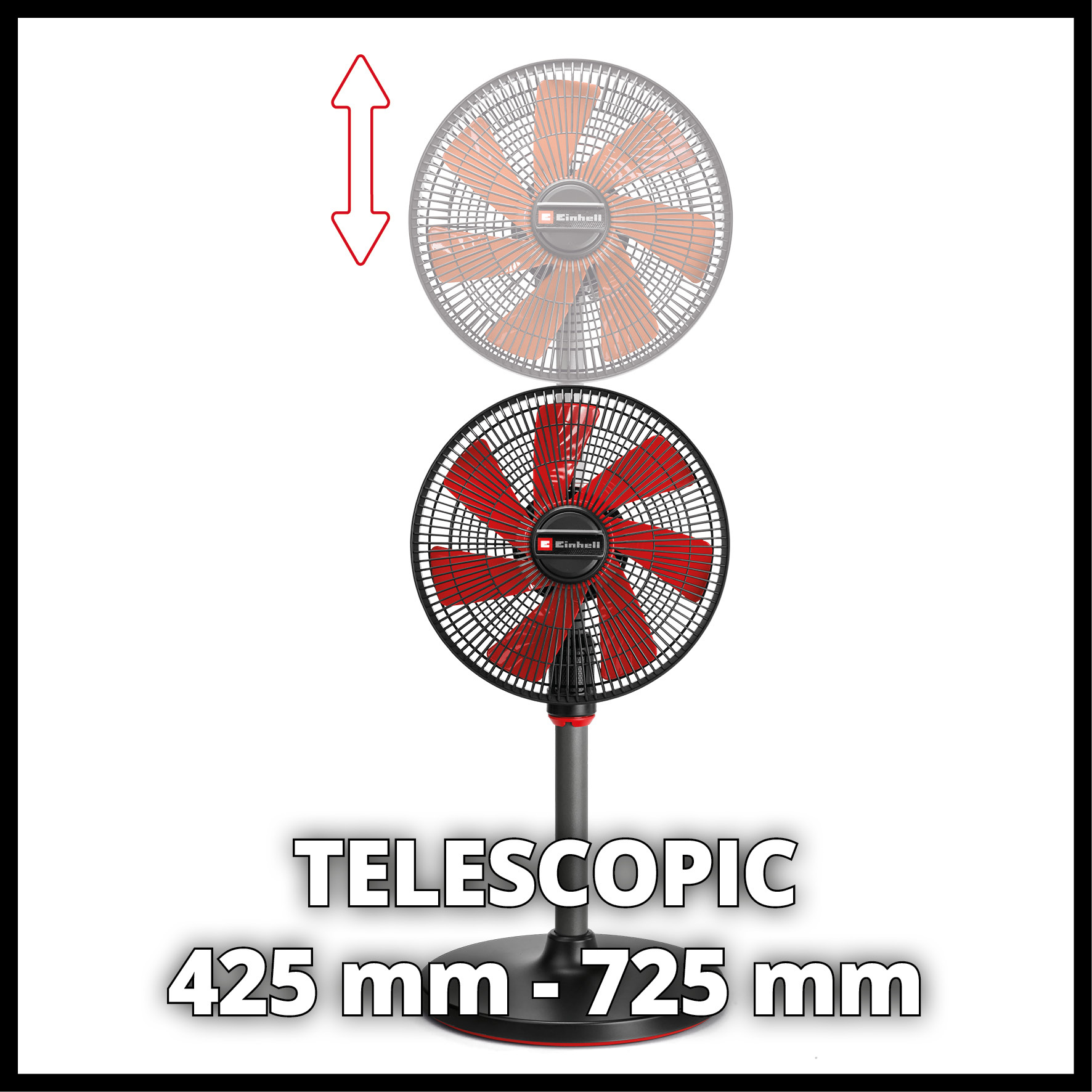 Met de 4 traploos instelbare snelheden stel je eenvoudig de gewenste luchtcirculatie in. De automatische zwenkfunctie van -60° tot +60° en de traploos kantelbare kop zorgen voor optimale luchtverdeling in elke ruimte. De in hoogte verstelbare standaard (42,5 cm tot 72,5 cm) maakt de ventilator flexibel inzetbaar – ideaal voor zowel binnen als buitengebruik.