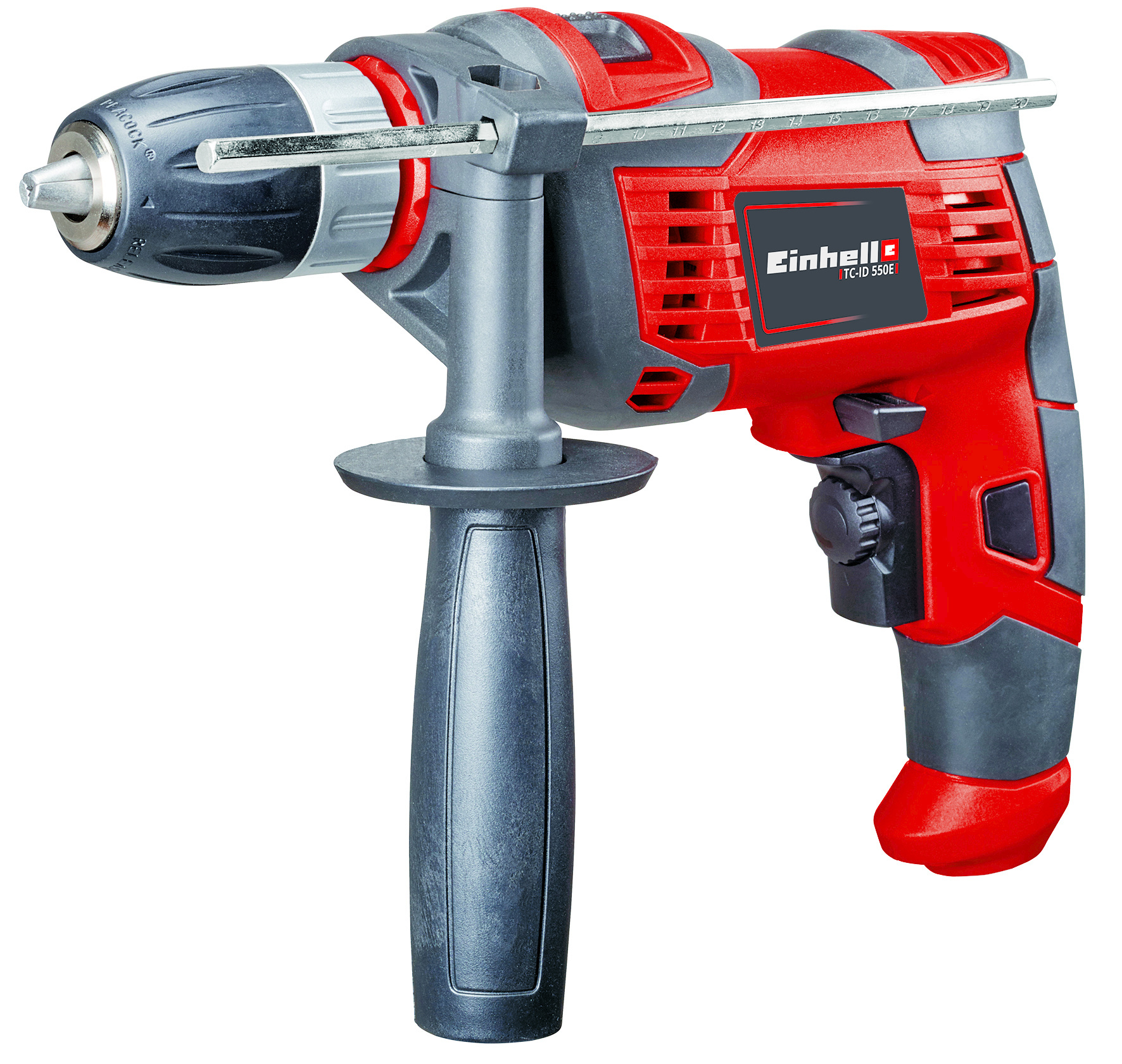 De toepassingsmogelijkheden voor de klopboormachine zijn divers. Met een vermogen van 550 W en een boorcapaciteit in hout/beton/metaal van 25/13/10 mm kunnen in een mum van tijd planken in de badkamer of douchecabine worden geïnstalleerd, keukenplanken worden gemonteerd of zware fotolijsten worden bevestigd. Lampen, projectoren of flatscreens kunnen moeiteloos worden geïnstalleerd. De elektronische snelheidsregeling met voorselectie regelt en maakt het boren van broze of zachte materialen zoals tegels of gewassen beton eenvoudiger. De stevige metalen diepteaanslag helpt bij nauwkeurig werken, zelfs bij snel achter elkaar boren. Bovendien heeft de klopboormachine een R/L schakelaar voor boren en schroeven en een traploos verstelbare extra handgreep voor optimaal werken. De extra handgreep is traploos instelbaar om de klopboormachine in de gewenste positie brengen en optimaal te kunnen werken. De klopboormachine is uitgerust met een snelspanboorhouder van 13 mm voor eenvoudig wisselen van gereedschap. Dit maakt het gebruik van een extra sleutel voor het losdraaien van de boorkop overbodig