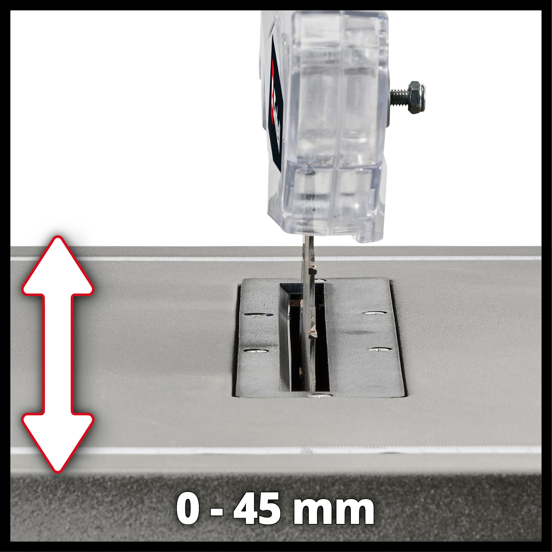 Dankzij de kantelbare zaagkop (tot 45°) en de traploos verstelbare zaaghoogte tot 45 mm is de machine perfect voor diverse zaagsneden, zoals rechte en verstekzaagsneden. De robuuste werktafel en dubbele klemming van de parallelgeleider zorgen voor stabiliteit en nauwkeurigheid. Daarnaast maakt de ingebouwde aansluiting voor stofafzuiging het werk schoon en veilig.