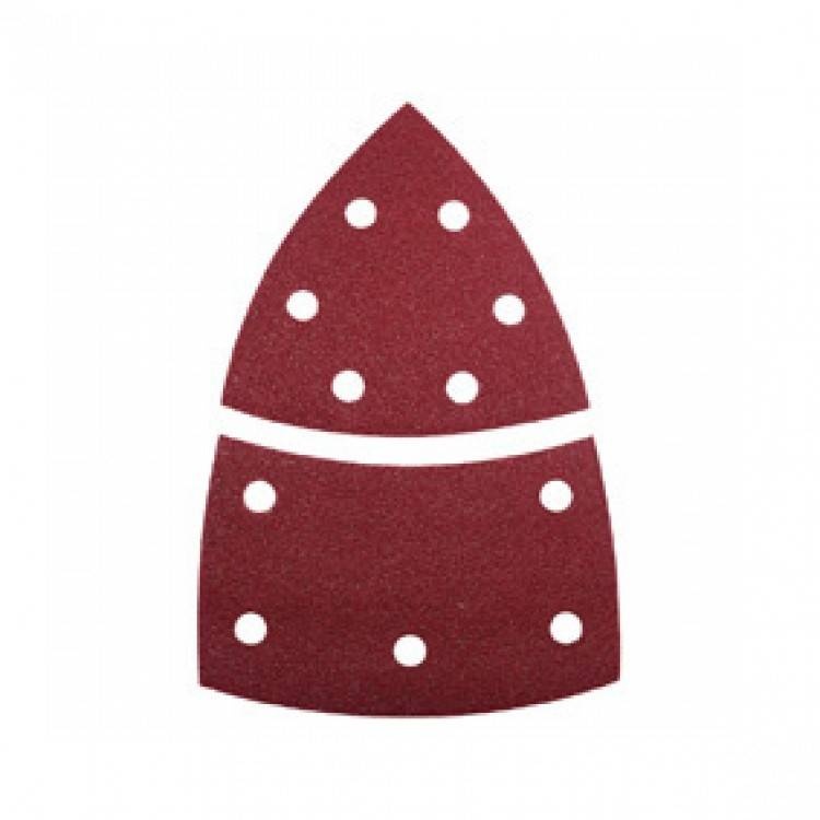 Schuurdriehoeken, HOUT & METAAL, edelkorund, 100 x 62, 93 mm, met aluminiumoxide bestrooid, gebonden met volledig synthetisch hars, versterkt dragermateriaal, met velours rug, geperforeerd, voor delta-/driehoekschuurmachines, voor het schuren van metaal, hout, verf, lak, plamuur, steen en kunststof.