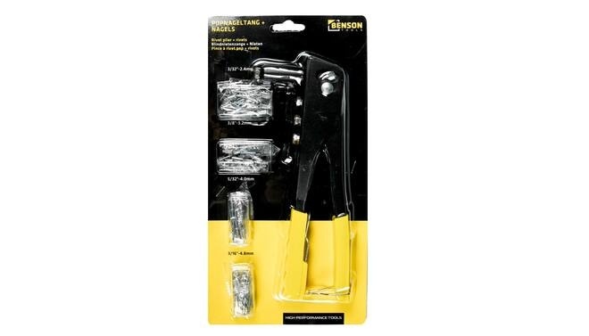 Deze Benson Popnageltang met Nagels biedt een complete oplossing voor lichte montagewerkzaamheden, perfect voor zowel professionele als doe-het-zelftoepassingen.