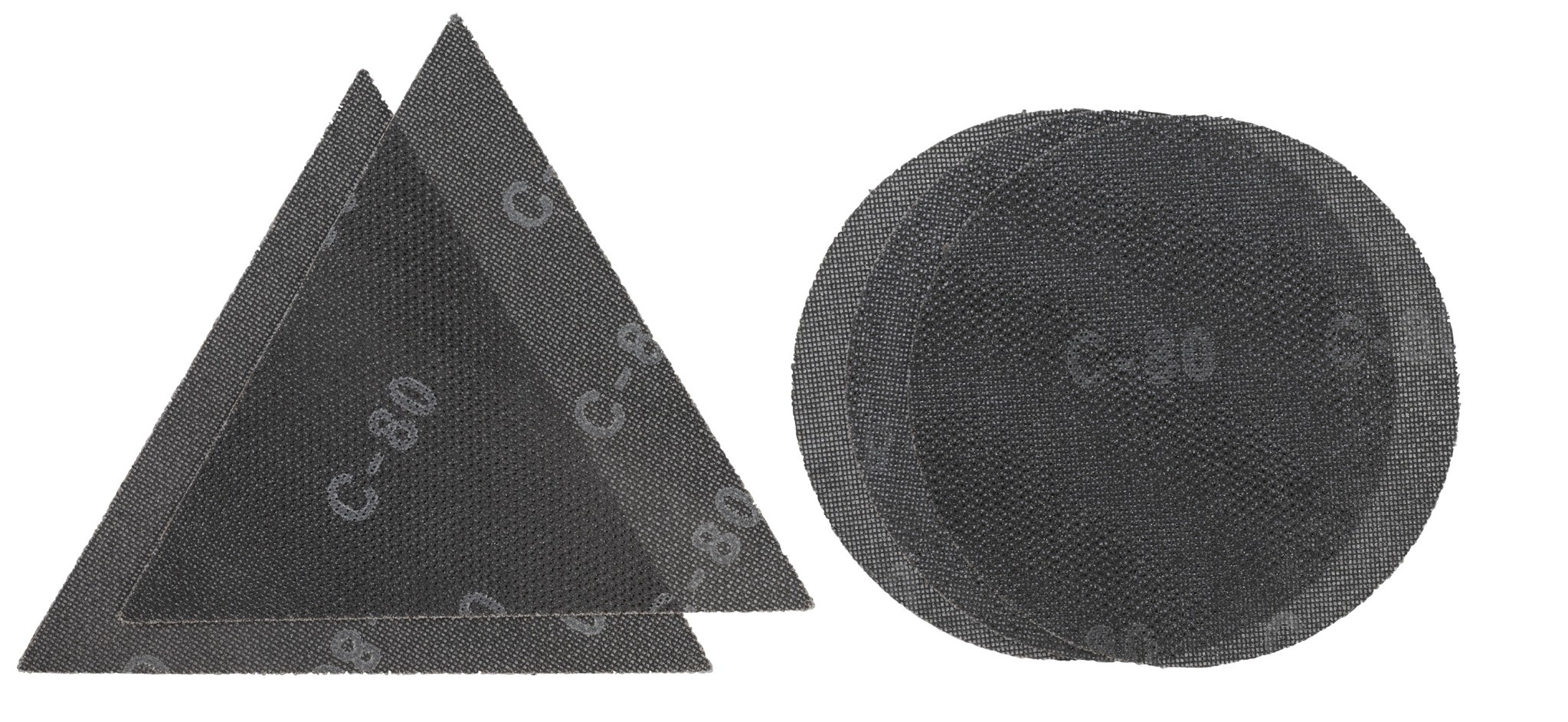 ✔ 2x schuurdriehoeken roosterdoek 287 x 287 x 287 mm – beide korrel K80, ideaal voor gedetailleerd werk