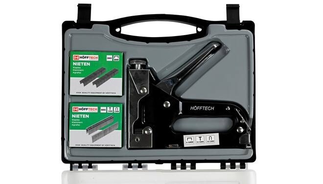 Praktische koffer: De set wordt geleverd in een stevige koffer, zodat de tacker en nieten netjes en overzichtelijk opgeborgen kunnen worden. Dit is handig voor transport en beschermt het gereedschap tegen beschadigingen.